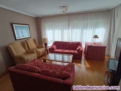 Piso en alquiler para larga temporada en Urbanización El Palmeral. Junto a playa y Parque del Palmeral. Tiene un salón comedor con una amplia terraza, armarios empotrados en entrada, en pasillo y en los dormitorios individuales, dormitorio de matrimonio (sin armario) con baño en suite, otro baño en pasillo. Tiene un total de cuatro dormitorios. Aire acondicionado frío calor (en salón, 1 dormitorio y el dormitorio principal). Cocina office reformada con lavadero. Suelos de parquet excepto en las zonas húmedas. Urbanización completa.