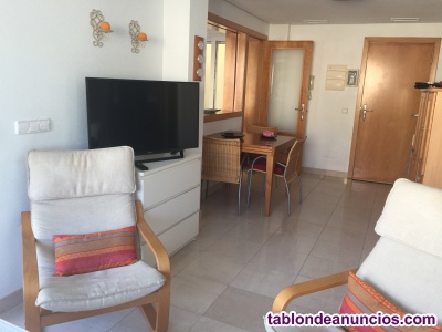 Vivienda nueva, en la mejor zona del pueblo, a 50m de la playa de levante, muy bien amueblada y con bastantes electrodomesticos, con dos dormitorios, salon comedor, cocina americana, dos terrazas (una de 80m2), aire acondicionado centralizado, wifi instalado, garaje y trastero. Excluidos julio y agosto