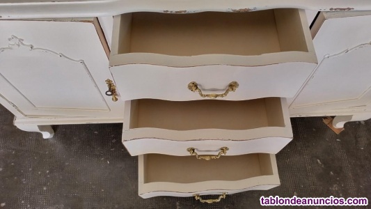 Elegante vitrina antigua , de mediados de siglo 20. Restaurada totalmente. Perfecta para exhibir tus objetos más preciados. Su diseño combina a la perfección la calidez de la madera con la delicadeza del cristal. Cristales originales biselados. Cerraduras y llaves funcionando. Medidas: 125 X 40 X 180 - Acabado en blanco . - Puertas con cristal para visibilidad. - Estantes interiores para organización.. Venta elegante vitrina antigua de segunda mano