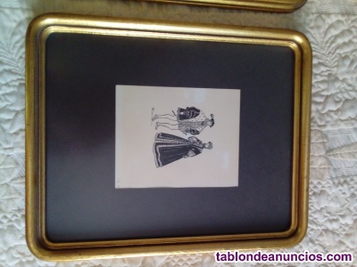 Pareja de cuadros a plumilla con motivos de cortesanos de época siglo XVI. Medidas: alto 0, 32 cm X ancho 0, 26 cm. Venta grabados en plumilla pareja cortesanos de segunda mano