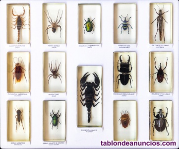 Colección Bichos. 7 cajas con tapa transparente. 95 insectos y arácnidos encapsulados en resina transparente