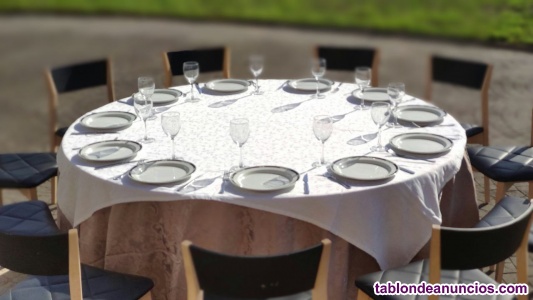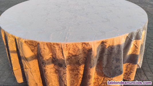 Mantelería de evento con caída elegante (tipo damasco/jacquard y lisos). Ideal para bodas, comuniones y cenas especiales. Entrega planchada y lista para vestir la mesa.