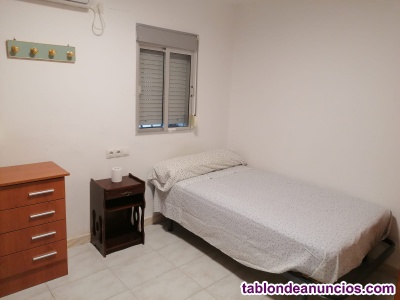 Habitación en casa a compartir, casa de 2 plantas en barriada de fácil acceso a las vías de salida para Sevilla, situada cerca de un supermercado y próximo a un instituto de FP. La habitación está amueblada con 2 roperos, 1 mesa escritorio, mesita de noche y cama individual de 90. Además la habitación tiene tv smartv, aire acondicionada e internet.