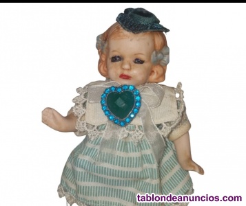 Muñeca antigua de los años 30, hecha de porcelana y tela, vestido costumisado por diseñador . Es una pieza delicada y encantadora.. Venta muñeca de los años 30 de segunda mano