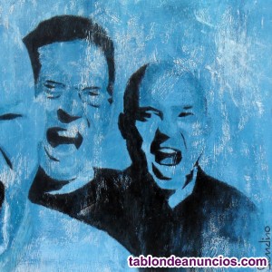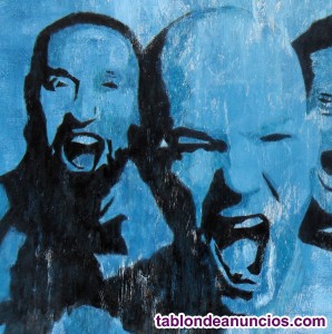 En esta obra he buscado capturar la esencia de la pasión y el ímpetu vital. Los tonos azules reflejan profundidad y serenidad, mientras que las figuras expresivas evocan un mensaje de tenacidad y el deseo de influir en el mundo. Es un tributo al espíritu indomable y a la lucha por la mejora continua, destinada a aportar una energía vibrante y reflexiva a cualquier espacio.. Venta pintura al óleo celtas cortos de segunda mano