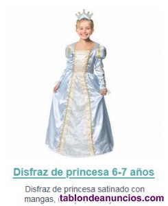 Disfraz de princesa satinado para niñas de 4 a 5 años. Incluye mangas, cuerpo, falda y corona.