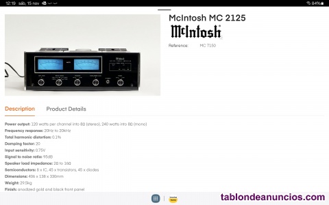 Amplificador Publicado hoy 18:58 en el Tablón de Anuncios de Alzira 2.200 € Se vende Aplificador McIntosh MC2125. Funciona bien. Pero hay que llevarlo para una limpieza. . Venta amplificador de segunda mano Ver todos los anuncios de PCZ Contactar Enviar Mapa