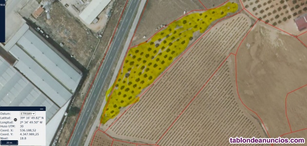 Parcela de 6.978 metros cuadrados junto a Polígono industrial y con acceso directo a la carretera de circunvalación de Villarrobledo. Con 102 olivos de secano de la variedad de Arbequina. Derechos de PAC con cubierta vegetal