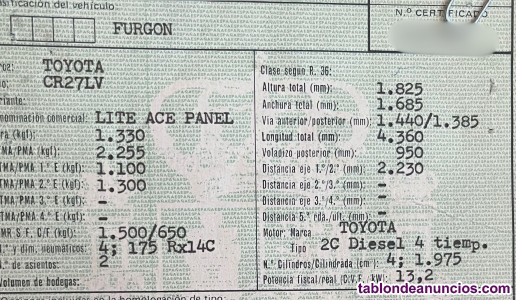 Toyota Lite Ace. Furgonetas de segunda mano en tablondeanuncios.
