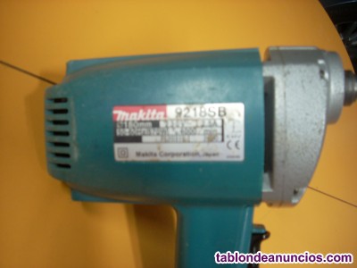 Vendo pulidora marca Makita 9218SB. Funciona perfectamente y está revisada, limpia y engrasada. Tiene sus llaves originales y accesorios para sujeción de platos y demás. Regalo varios platos y lijas usadas pero en buen estado así como un disco de tela para pulir metal. Polivalente para repaso y pulido de metal, piedra, cristal y toda clase de plástico y fibras. Solo puedo atender por la tarde por trabajo. Precio algo negociable.