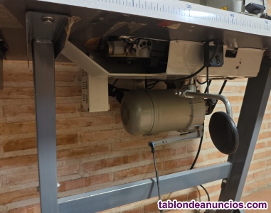 Máquina de coser industrial DÜRKOPP con sistema de puller. Puede coser pespunte y zig-zag en tejidos gruesos como piel, lona... El puller se puede levantar y usar como máquina normal para coser tejidos más ligeros. Incluye mesa robusta de metal y madera con cajón, funda de máquina , varias canillas, blister de agujas y dos presantelas para recto y zig-zag. En muy buen estado tanto estético como funcional, revisada y puesta a punto por mecánico. Las fotos forman parte de la descripción. Cualquier duda, consultar. Sólo recogida local (Ciudad Real). Puedo enviar un video mostrando el funcionamiento de la máquina.