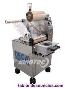 Termoselladora semi automática, para envases preformadas. Equipo de ocasión prácticamente nuevo. Del Fabricante ELTON, Modelo MECA 900. Especialmente diseñada para Envasar en formato de termosellado para conseguir una mejor presentación, así como facilidad de almacenaje y transporte. Realiza automáticamente el termosellado, recorte perfecto del filme y recogido automático del film. Dispone de 1 horma de sellado. Horma para sellado de envase redondo tipo plato.