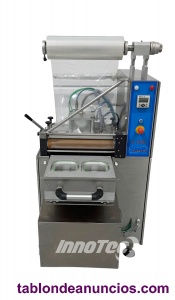 Dimensiones de la bandeja a sellar tipo plato Q: 180 mm x 180 mm. X2 unidades por ciclo