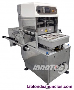 Termoselladora semi automática, para envases preformadas. Equipo de ocasión prácticamente nuevo. Del Fabricante ULMA, Modelo SMART 500. Especialmente diseñada para Envasar en formato de termosellado para conseguir una mejor presentación, así como facilidad de almacenaje y transporte. Realiza automáticamente el termosellado, recorte perfecto del filme y recogido automático del film. Dispone de 1 horma de sellado. Horma para sellado de 4 envases a la vez