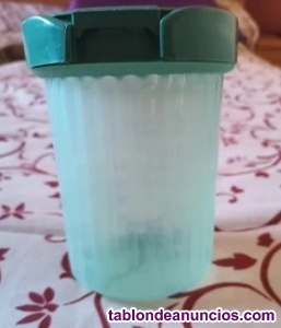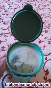 Bote de plastico transparente verde con tapa bisagra , para llenarlo de azucar sal etc..... Venta bote de plastico transparente verde con tapa de segunda mano