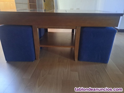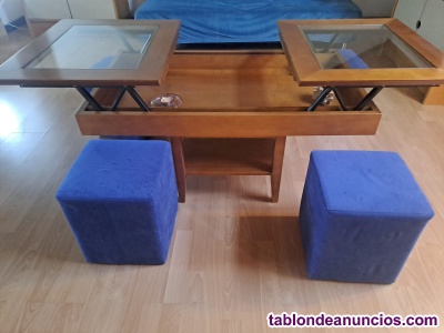 Mesa de centro elevable, con taburetes.