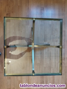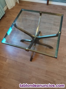 Mesa auxiliar de bronce y cristal