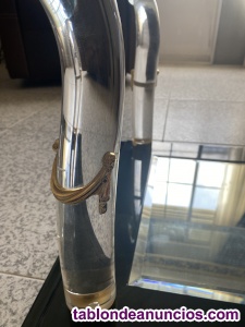 Mesa de diseño con un cristal superior de 70 por 70 ,viselado y con cuatro patas en metacrilato transparente con adornos dorados ,en la base tiene un espejo que le da ese toque distinguido .Se vende por 120 euros y está en perfecto estado. Tengo también la mesa central a juego pero esta tiene un pequeño roce en un pico, esta el precio es a convenir. Venta mesa cigarrera o de rincon de segunda mano