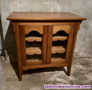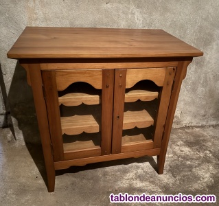 Aparador platero auxiliar (80x49x80) con 2 puertas vitrina y estantes, 100% macizo en abedul color nogal medio. Fabricante nacional. Artículo de exposición totalmente nuevo procedente de cierre de tienda de muebles. Precio en tienda 480€. Precio liquidación 350€. Ahora solo 250€.. Venta aparador platero de segunda mano