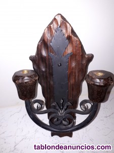 Mesa, dos sillas un sillón de mesa despacho, armario vidriera para libros, etc. Y regalo aplique de luz dos velas de bombilla eléctrico como para choco o bodega. En muy buen estado, madera sólida y buena, sólo se desmonta el armario, mesa de 1m o algo más. Se ofrece a la venta , precio salida 500 euros todo y transporte cuenta del comprador a donde se lo quiera llevar, a negociar precio, facil acceso de recogida del mobiliario por el q lo adquiera. Escribir interesados al email adjunto. Adjunto fotos.