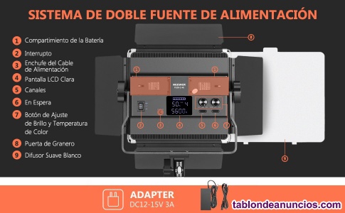 Marca NEEWER P-200-2.4G, 2 Pantallas LED bicolor, 2 Trípodes de 2 m, 200 SMD CRI 94 +, Soporte U, USB 2.0, Viseras desmontables, Pantalla LCD, Luz potente, Ajuste del brillo y temperatura del color de 3200K a 5600K, 2 Adaptadores de potencia 23W, 2 Cargadores, Mando a distancia, Funda incluida.