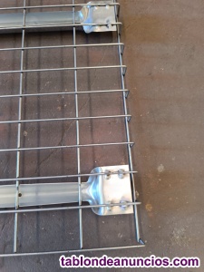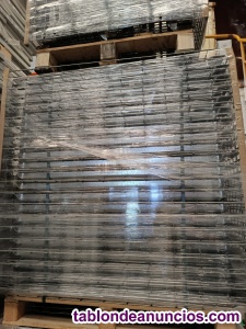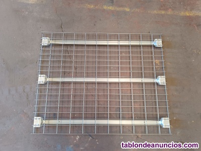 Se venden mallas metálicas nuevas, diseñadas para colocarse entre los largueros de las estanterías industriales, ofreciendo soporte adicional para cargas irregulares y aumentando la seguridad en el almacenamiento. Características: Medidas interiores: 880 x 1050 mm Capacidad de carga: hasta 300 kg por malla Perfectas para palets irregulares o cargas que requieren apoyo completo Ideales para industrias donde la madera está prohibida o limitada Fabricadas en material resistente, garantizan durabilidad y estabilidad. Se pueden usar en cualquier sistema de estanterías compatible para optimizar el espacio y la seguridad de tus almacenes. Precio por unidad. Para más información o consultar disponibilidad, contacta con nosotros sin compromiso.