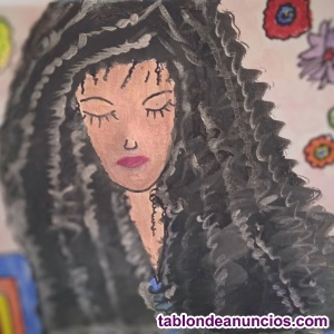 Rostro de mujer con melena de rizos sobre bastidor de madera y lienzo de 40 x 30 cms