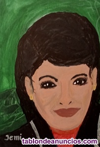 Rostro de mujer morena y ojos negros. Pintada en acrílico sobre canva de 24 x 18 cms