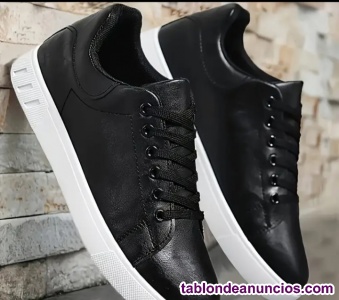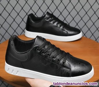 Zapatillas deportivas de hombre con cordones - Suela de PVC antideslizante, uso deportivo, casual y al aire libre, forro de tela cómoda, calzado de color negro y blanco con detalles de colores en el talón - Ajuste cómodo y confortable. 35 euros negociable. Talla 42.