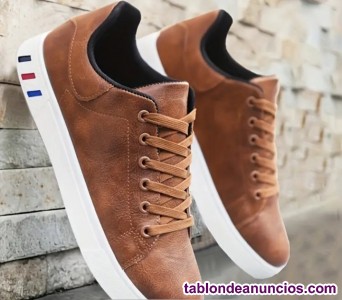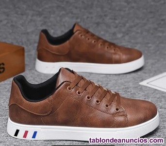 Zapatillas deportivas de hombre con cordones - Suela de PVC antideslizante, uso deportivo, casual y al aire libre, forro de tela cómoda, calzado de color marrón y blanco - Ajuste cómodo y confortable. 35 euros negociable. Talla 43.