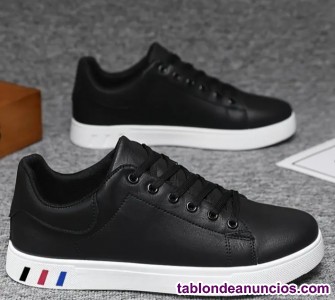 Zapatillas deportivas de hombre con cordones - Suela de PVC antideslizante, uso deportivo, casual y al aire libre, forro de tela cómoda, calzado de color negro y blanco - Ajuste cómodo y confortable. 35 euros negociable. Talla 43.