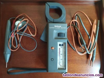 Pinza amperimétrica National Super Clamp Meter. Modelo: TYPE300K 600V AC 50Hz. Incluye puntas de prueba. Guardada en una bolsa negra para fácil transporte de 26 x 14 cm.