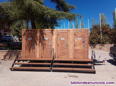 Disponemos de aseos individuales en madera, remolques de aseos, aseos modulares para interior y exterior de recintos y aseos fijos para alquileres de larga duración.