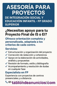 ASESORÍA PARA PROYECTOS DE INTEGRACIÓN SOCIAL Y EDUCACIÓN INFANTIL (Grado Superi