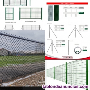 Tenemos vallas alambres palos centrales, esquineros y tensores y también hacemos la puerta necesaria a medida.