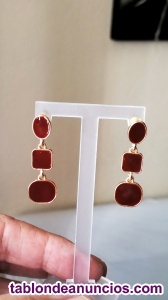 Pendientes vintage burdeo largos dorado