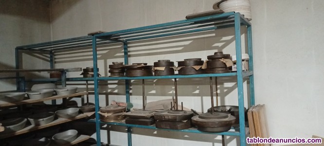 Vendo por jubilación prensa cerámica con 20 moldes metálicos y 4 juegos de aros para molde de escayola, está preparada para los distintos moldes con extractor