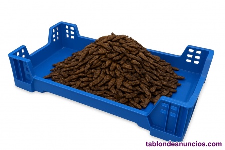 Larva deshidratada de insectos mosca soldado negra. Alimento con alto contenido en proteína para gallinas ponedoras. Mejora el bienestar de tus gallinas ponedoras e incrementa la producción de huevos. Suplemento pienso para gallinas ponedoras que favorece la puesta de huevos.