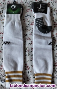 Vendo dos pares de calcetines blancos largos de futbol iguales sin estrenar, segun fotos. Se venden juntos o por separado. 3 € CADA UNO. 677 727 047.