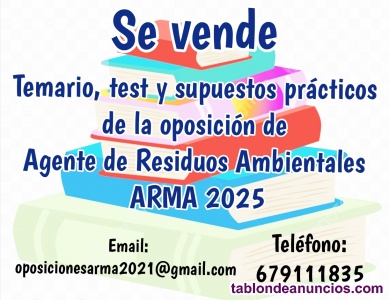 Nosotros ofrecemos un temario totalmente actualizado, realizado por ARMAs con experiencia preparando desde 2021. Se incluye temario y resúmenes. Además, ofrecemos test con más de 1000 preguntas y supuestos prácticos. Puedes comprarlo todo junto o solo la parte que te interese. Para un mayor seguimiento y acompañamiento en el estudio, tenemos un grupo de wasap donde vamos mandando NUEVAS preguntas de test y supuestos prácticos, de refuerzo.