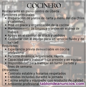 ¡Estamos contratando cocinero/a en Úbeda!