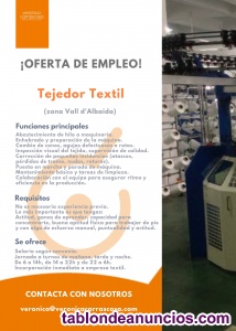 Oferta de trabajo para peón-tejedor textil