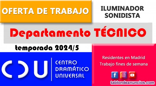 Buscamos Sonidista. Localidad Madrid. Artes Escénicas.