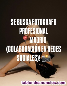 SE BUSCA FOTOGRAFO PROFESIONAL EN MADRID PARA SESIÓN DE FOTOS DE COLABORACIÓN CON REDES SOCIALES -Disponibilidad de la primera o segunda semana de noviembre (se puede cuadrar fecha segun su disponibilidad) - Para mas Información escribir al privado en Instagram @paoladenisee. Ofertas de empleo en tablondeanuncios.